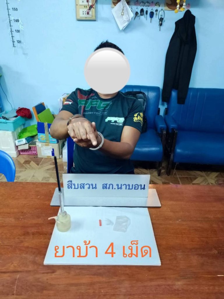 ชุดสืบสวนจับกุมยาเสพติด 15 เมษายน 202515 เมษายน 2025 สัจจะ นาบอน ผลการปฏิบัติงานสืบสวน วันที่12 มี.ค. 68 เจ้าหน้าที่ตำรวจชุดสืบสวน สถานีตำรวจภูธรนาบอน ได้ทำการจับกุมยาเสพติด ผู้ต้องหา 1 คน ของกลาง ยาบ้า 4 เม็ด มีนาคม2568
