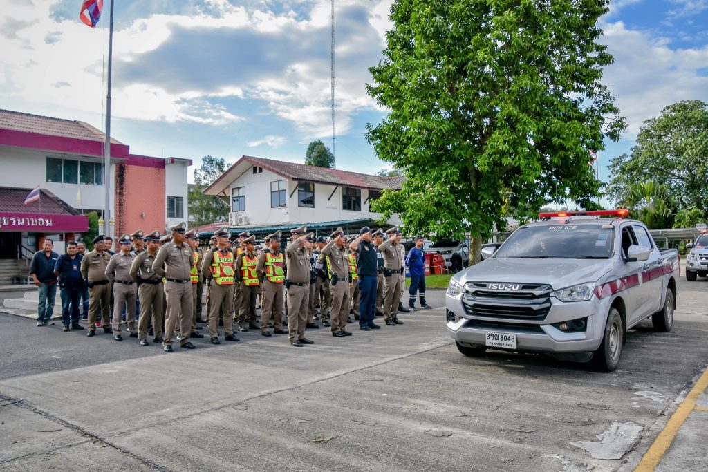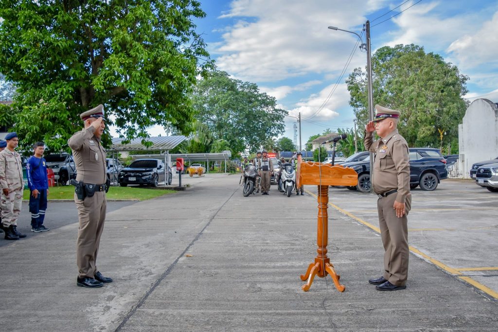 ข้าราชการตำรวจสภ.นาบอน ร่วมกับอาสาสมัครรักษาดินแดน ข่ายมูลนิธิ ปล่อยแถวระดมกวาดล้างอาชญากรรม ช่วงก่อนวันหยุดเทศกาลปีใหม่ 2567 ณ ลานหน้า สภ.นาบอน