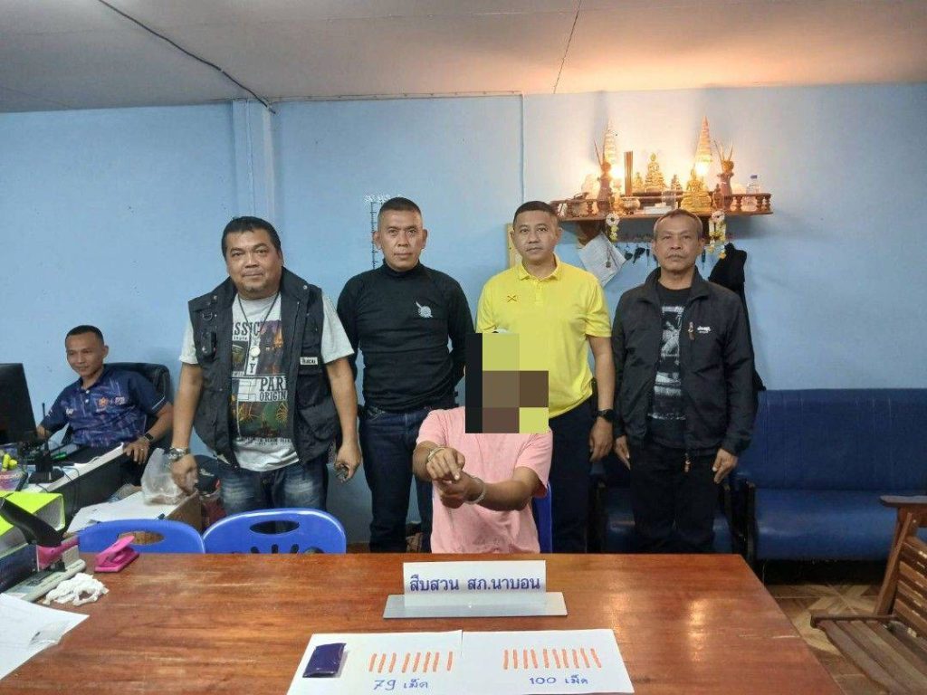 ชุดสืบสวนจับกุมผู้ต้องหาจำหน่ายยาเสพติด 15 เมษายน 202515 เมษายน 2025 สัจจะ นาบอน ผลการปฏิบัติงานสืบสวน วันที่11 พ.ย. 67 เจ้าหน้าที่ตำรวจชุดสืบสวน สถานีตำรวจภูธรนาบอน ได้ทำการจับกุมผู้ต้องหาจำหน่ายยาเสพติด ผู้ต้องหา 1 คน ของกลาง ยาบ้า 181 เม็ด พฤศจิกายน2567