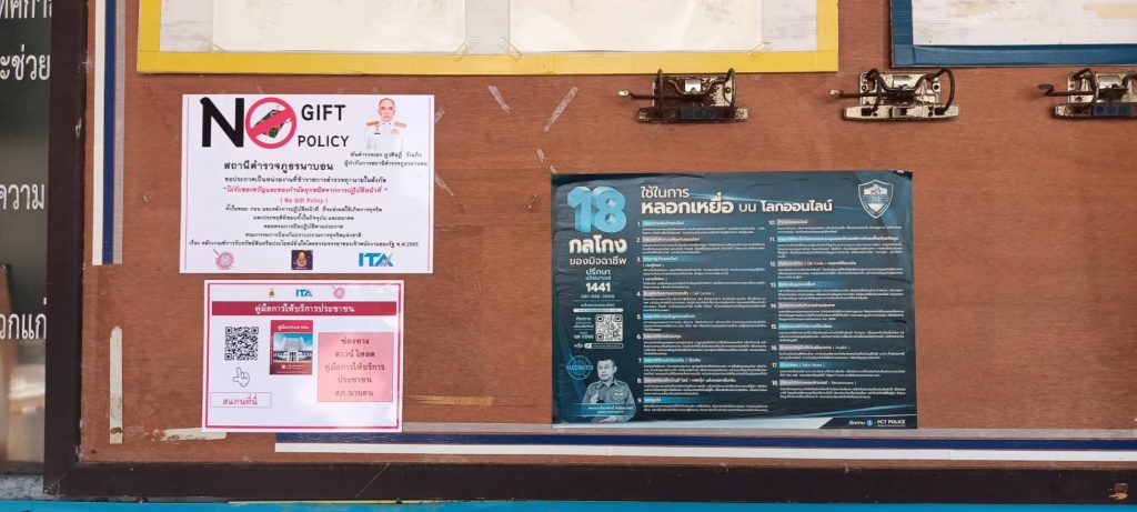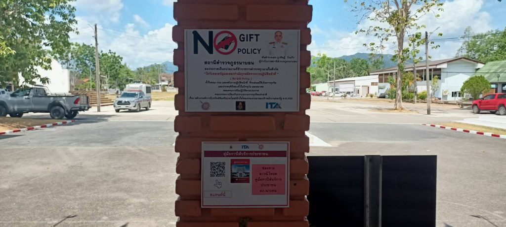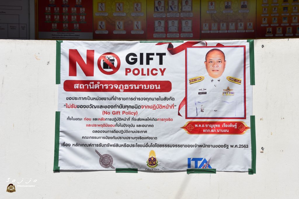 ติดตั้งไว้ในจุดบริการประชาชน เพื่อประกาศเจตนารมณ์ว่า ข้าราชการตำรวจ สภ.นาบอน ไม่รับของขวัญ ของกำนัลทุกชนิด