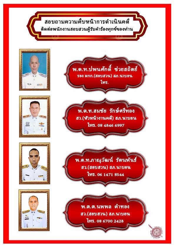 มีการจัดทำป้ายชื่อ พร้อมระบุหมายเลขโทรศัพท์เพื่อติดตามความคืบหน้าทางคดี