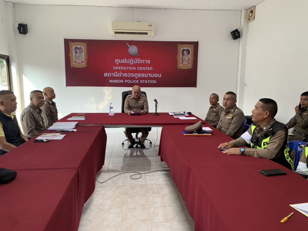 พ.ต.อ.ชาญยุทธ เรืองดิษฐ์ ผกก.สภ.นาบอน ได้เรียกประชุมคณะทำงานฯ อย่างต่อเนื่องเพื่อมอบหมายหน้าที่ให้คณะทำงานฯ และติดตามความคืบหน้า พร้อมสอบถามปัญหาและอุปสรรค