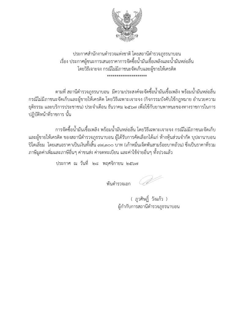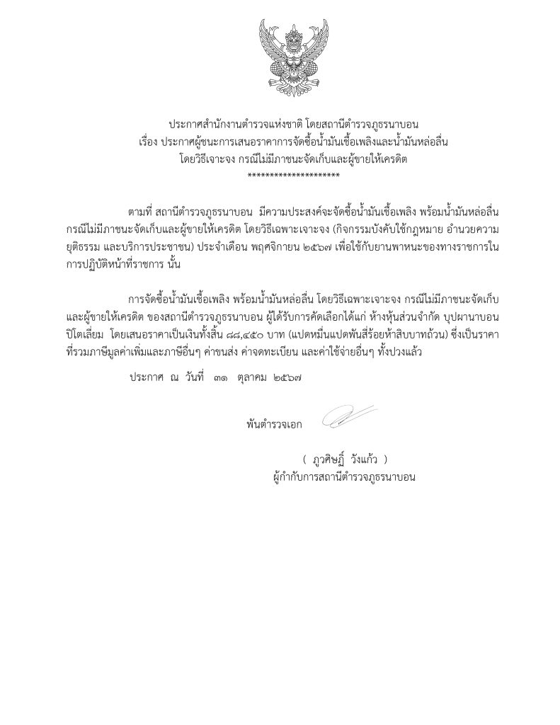 ประกาศต่าง ๆ เกี่ยวกับการจัดซื้อจัดจ้าง 2568 ประกาศเกี่ยวกับการจัดซื้อจัดจ้าง ของสถานีตำรวจภูธรนาบอน ประจำปี งบประมาณ พ.ศ. 2568 รายงานการประกาศเดือน ตุลาคม 2567 (PDF) รายงานการประกาศเดือน ตุลาคม 2567 (WORD) รายงานการประกาศฯ เดือน พฤศจิกายน 2567 (PDF) รายงานการประกาศฯ เดือน พฤศจิกายน 2567 (WORD) รายงานการประกาศฯ เดือน ธันวาคม 2567 (PDF) รายงานการประกาศฯ เดือน ธันวาคม 2567 (WORD) รายงานการประกาศฯ เดือน มกราคม 2568 (PDF) รายงานการประกาศฯ เดือน มกราคม 2568 (WORD) รายงานการประกาศฯ เดือน กุมภาพันธ์ 2568 (PDF) รายงานการประกาศฯ เดือน กุมภาพันธ์ 2568 (WORD) รายงานผลการประกาศฯ เดือน มีนาคม 2568 (PDF) รายงานผลการประกาศฯ เดือน มีนาคม 2568 (WORD)